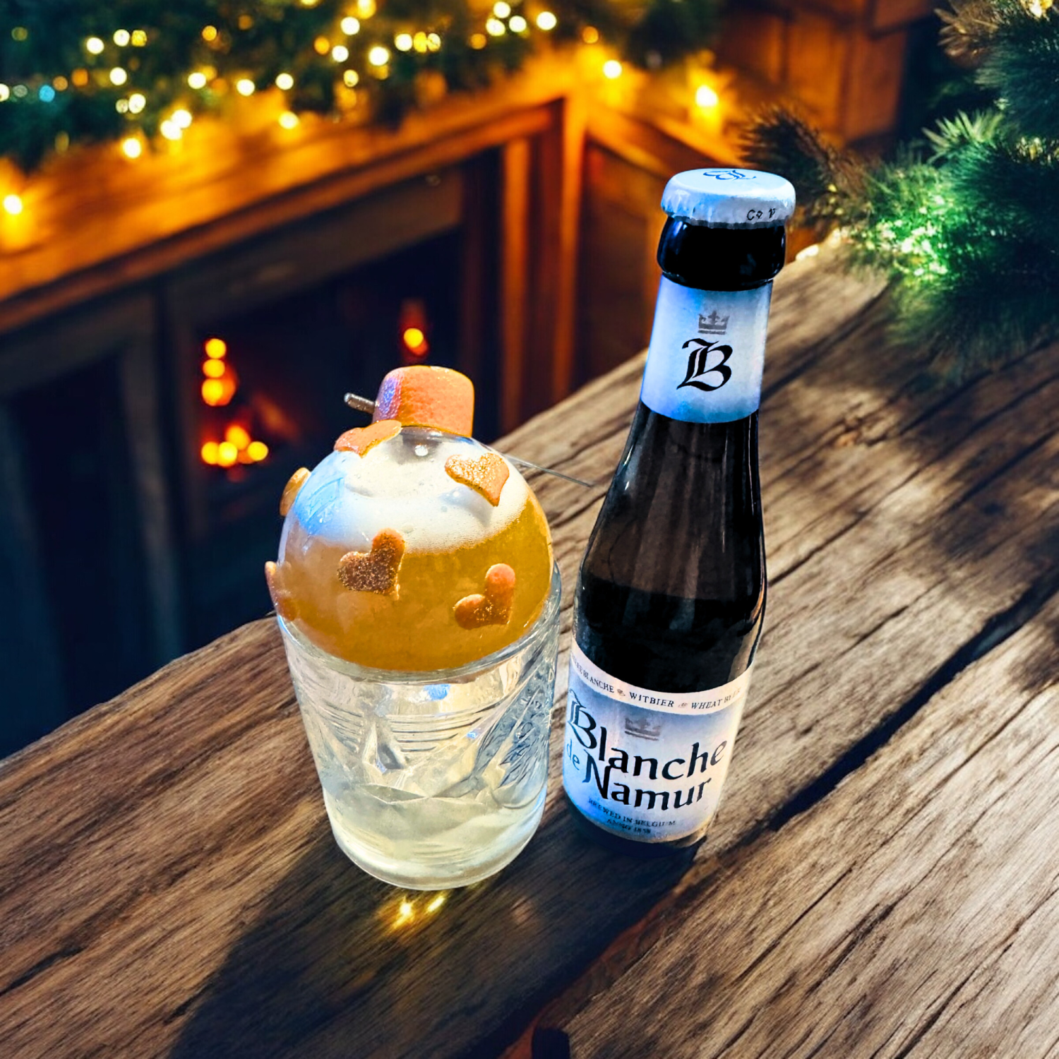 Giet de triple sec, het mandarijnensap en de siroop in een shaker met ijs en shake krachtig. Voeg de glitter toe en de goed gekoelde bier. Giet het mengsel in een kerstbal, voor een WAOUW effect !